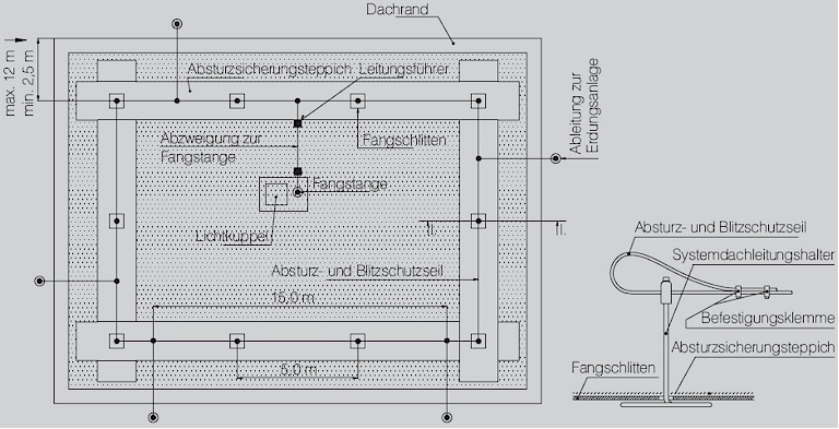 Absturzschutzes und die Aufgaben des Blitzableiters. Die